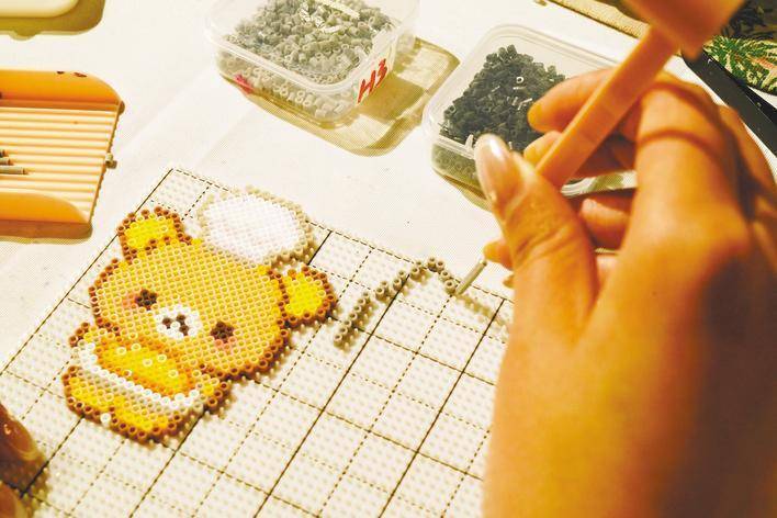 主顾在一二三造物所小店玩拼豆。