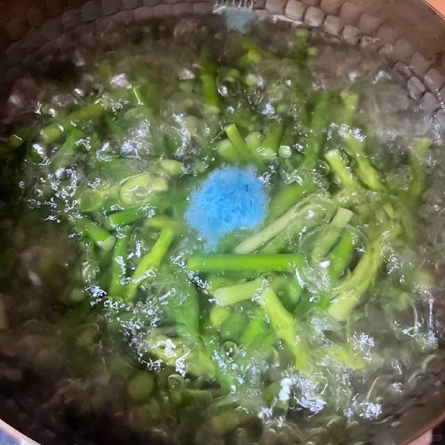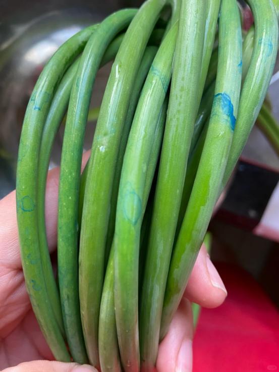 但从健康角度来说,提出巨匠,买蒜苔时,最佳别买喷了蓝矾的;尽量去正规超市购买,且食用前先热水焯一下,去去蓝矾残留。