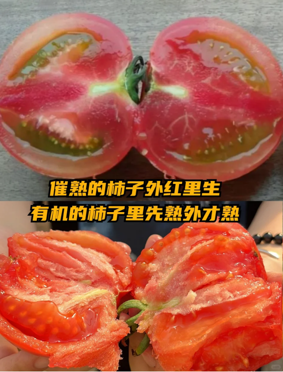 换句话来说,用“乙烯利”搞定西红柿,约等于“催熟剂”,外面红彤彤,内部的籽已经绿色的,而野人茄有毒。
